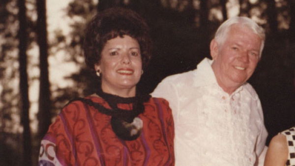 Elena Diaz-Verson Amos poses with her husband, Aflac cofounder John Amos, in the 1980s. Born in Havana, Cuba, Amos studied as an exchange student at the University of Miami in Florida and remained active in Cuban advocacy and humanitarian causes throughout her life. In 1955 she and her husband moved to Columbus, where she became active in a variety of philanthropic causes.