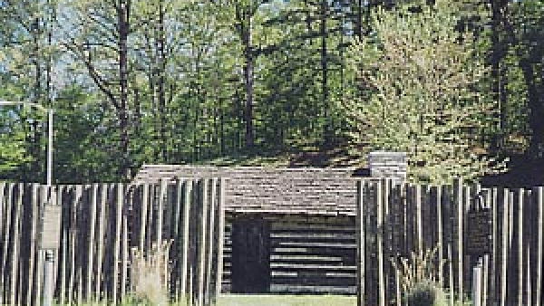 A replica of Fort Peach Tree, which was erected on the banks of the Chattahoochee River in 1814 during the War of 1812, stands in Atlanta. The fort was used as a construction yard for the flatboats that carried shipments along the river to Fort Mitchell, in present-day Alabama.
